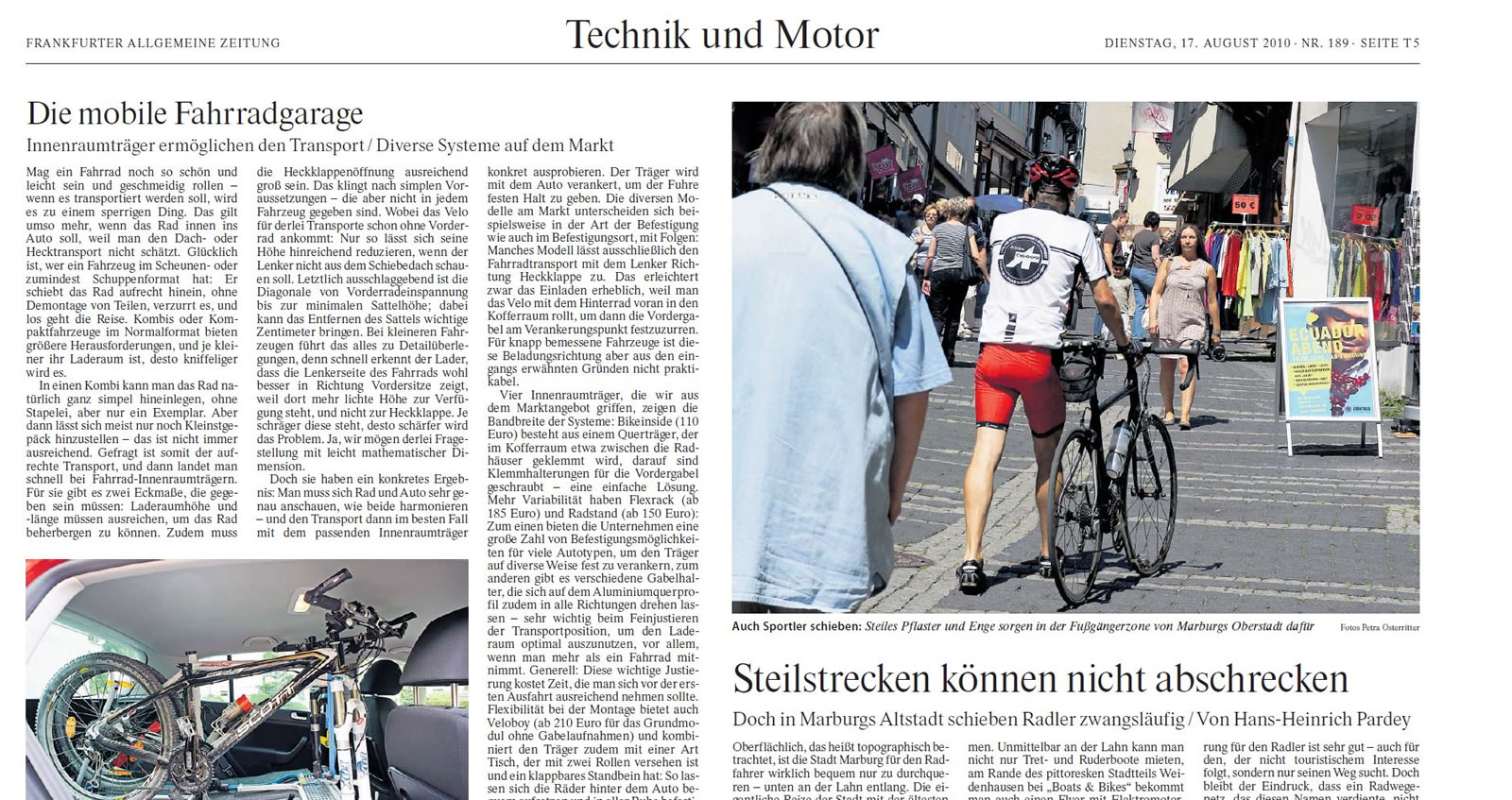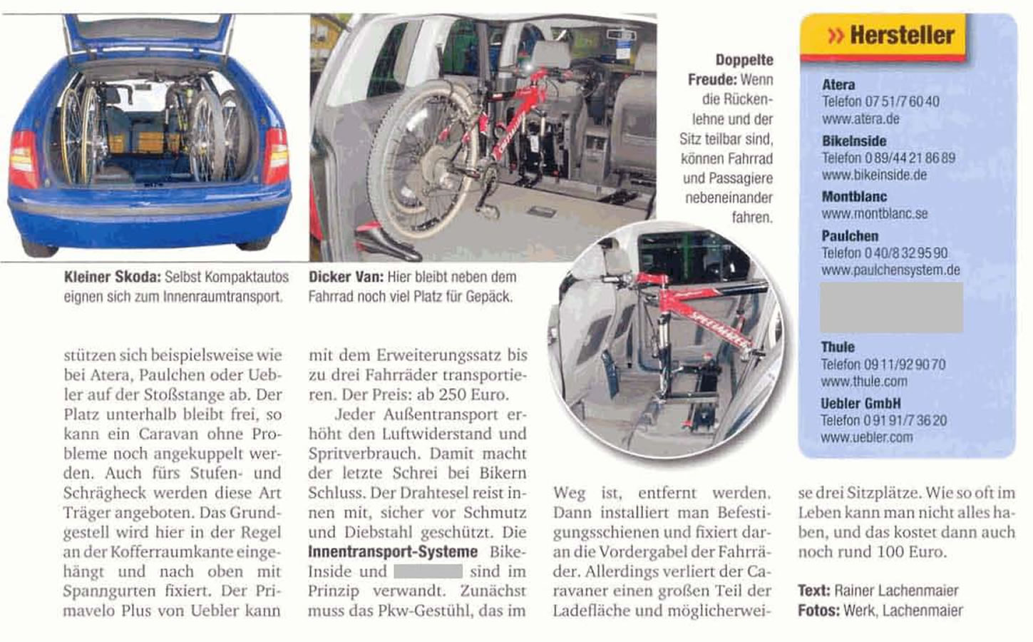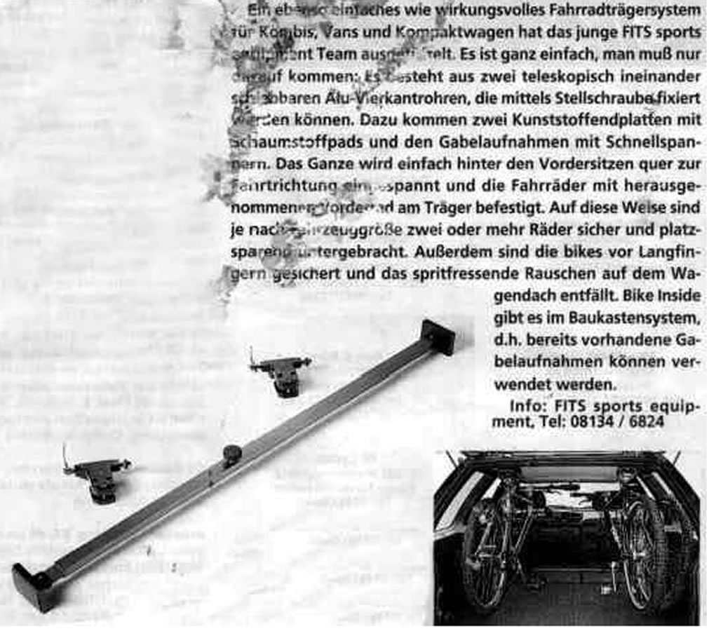 ...In einem Kombi kann man das Rad natürlich ganz simpel hineinlegen, ohne Stapelei, aber nur ein Exemplar. Aber dann lässt sich meist nur Kleinstgepäck hinzustellen - das ist nicht immer ausreichend. Gefragt ist somit der aufrechte Transport, und man landet schnell bei Fahrrad-Innenraumträgern. Für sie gibt es zwei Eckmaße, die gegeben sein müssen: Laderaumhöhe und -länge müssen ausreichen, um das Rad beherbergen zu können. Zudem muss die Heckklappenöffnung groß genug sein...