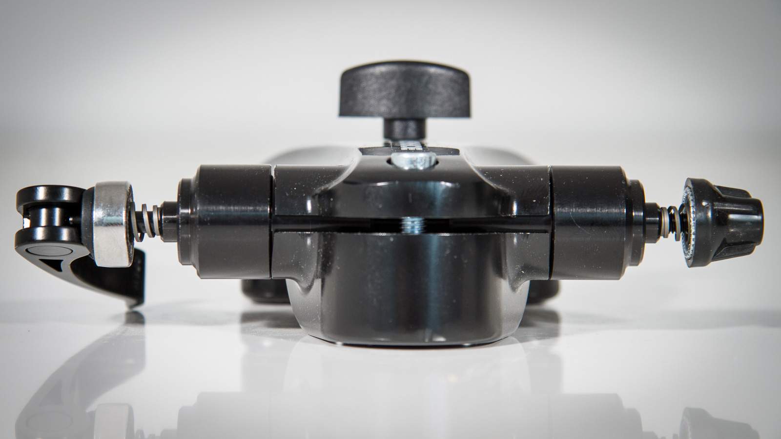 Die Gabelaufnahme kann auf dem Grundträger mit Knebelschrauben stufenlos ohne Werkzeug verschoben werden und ist um 180° drehbar. Das ermöglich eine schnelle und variable Positionierung der Fahrräder auf der Ladefläche.